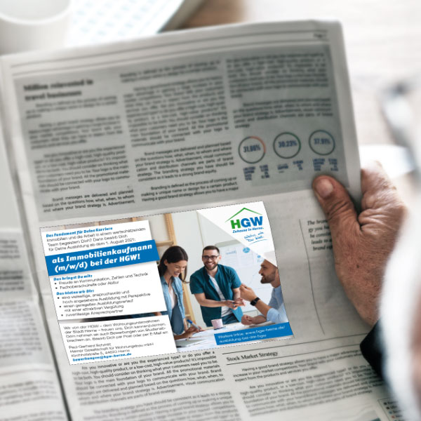 Die Herner Gesellschaft für Wohnungsbau mbH (HGW) gehört neben vielen anderen Wohnungsunternehmen zu den Wohnungsgesellschaften, die junge Immobilienkaufleute ausbilden. Diese haben bei der HGW die Möglichkeit, alle Abteilungen zu durchlaufen und das gesamte Spektrum der Wohnungswirtschaft kennenzulernen. stolp+friends hat für die HGW ein neues Stellenanzeigenkonzept entwickelt.
