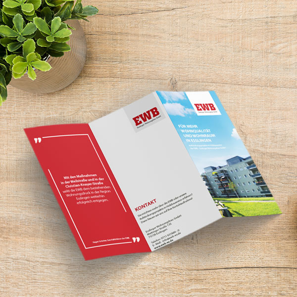 Wie die EWB mehr Wohnqualität und Wohnraum in Esslingen bereitstellt – das zeigt der von stolp+friends konzipierte und gestaltete Imageflyer.