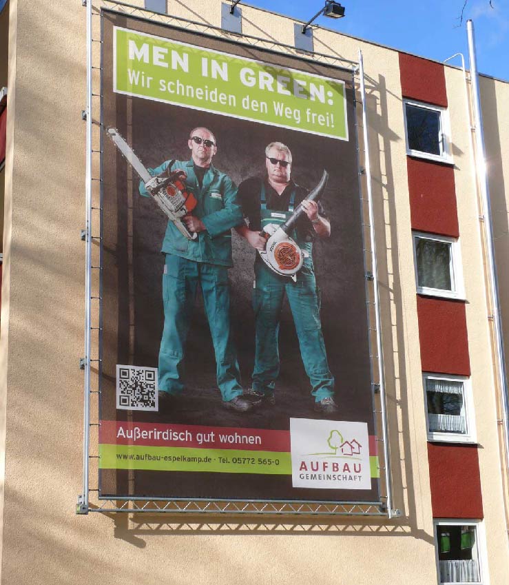 Das von stolp+friends entwickelte Marketingkonzept zur Leerstandsreduzierung und Imageförderung sah außerdem eine kreative, zielgruppengerechte Vermietungsförderungskampagne vor. Sie kommunizierte die Vorteile der sozial orientierten Wohnungsgesellschaft und wurde seinerzeit sogar von einigen VdWVerbänden ausgezeichent. stolp+friends setzte zudem erfolgreich auf weitere originelle Plakatkampagnen für unterschiedliche Zielgruppen: Pendler und auch Mitarbeiter von in Espelkamp ansässigen Unternehmen sollten als Mieter der Aufbaugemeinschaft gewonnen und die Abwanderung aus der Stadt auf diese Weise gemindert werden