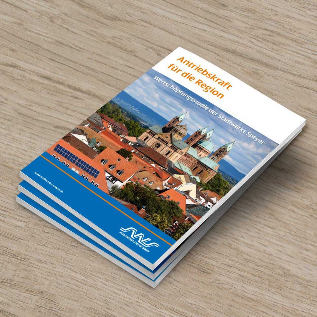 Der von stolp+friends konzipierte Wertschöpfungsbericht zeigt: Ein Großteil der Ausgaben der Stadtwerke Speyer bleibt in der Region und auch für viele lokale Arbeitsplätze ist der Versorgungsbetrieb verantwortlich. Das Handeln der Stadtwerke Speyer ist also eine echte „Antriebskraft für die Region“. Und das wissen dank des von stolp+friends gestalteten Wertschöpfungsberichts im Corporate Design der Stadtwerke Speyer nun noch mehr Menschen.
