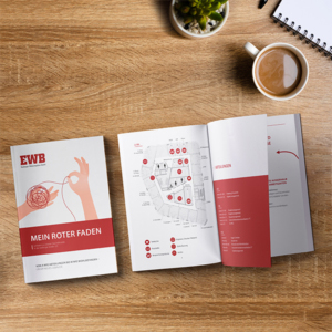 In dem von stolp+friends konzipierten Handbuch finden die EWB-Mitarbeiter:innen alle Informationen zu ihrem neuen Arbeitsplatz.